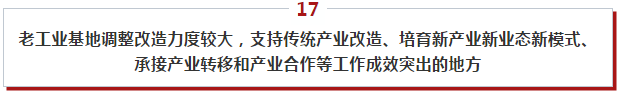 2019年對上述地方優(yōu)先支持在老工業(yè)基地振興有關重大改革和重大政策方面先行先試,支持產(chǎn)業(yè)轉(zhuǎn)型升級示范區(qū)建設和城區(qū)老工業(yè)區(qū)搬遷改造,并加大中央預算內(nèi)投資專項資金支持力度。(國家發(fā)展改革委會同有關部門組織實施)