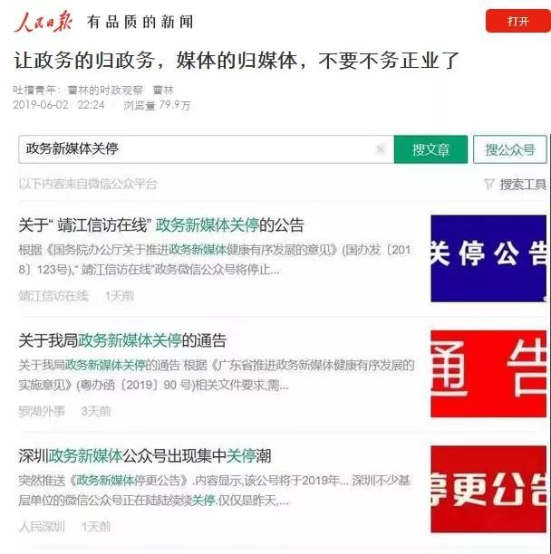 昨天,中青報評論員曹林的一篇《政務歸政務,媒體歸媒體,多數政務新媒體都該關停》的微信推文刷屏了荊楚君的朋友圈。