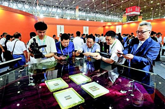 圖為:6月11日,中國2019世界集郵展覽在武漢國際博覽中心開幕。圖為觀眾在珍郵展區欣賞來自中國郵政郵票博物館的鎮館之寶。 (湖北日報全媒記者 李溪 攝)