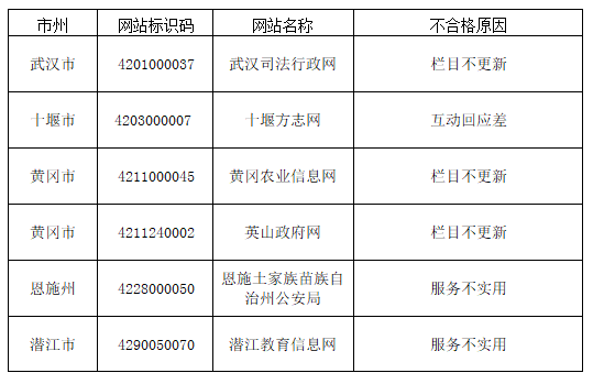 (二)部分單位對(duì)政府網(wǎng)站管理松散。有的單位不按規(guī)定流程關(guān)停政府網(wǎng)站。如湖北軍休網(wǎng)已關(guān)停,但長(zhǎng)時(shí)間未在全國(guó)政府網(wǎng)站信息報(bào)送系統(tǒng)中進(jìn)行申請(qǐng)。有的單位在政府網(wǎng)站主辦單位、域名等信息發(fā)生變更后未第一時(shí)間進(jìn)行更新,如十堰質(zhì)監(jiān)網(wǎng)、湖北省固定資產(chǎn)投資項(xiàng)目管理和服務(wù)系統(tǒng)。