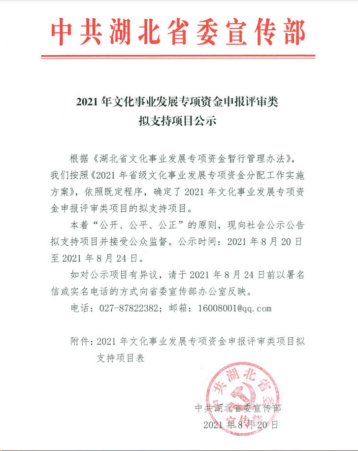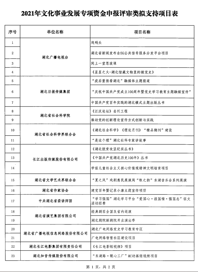 2021年文化事業發展專項資金申報評審類擬支持項目公示