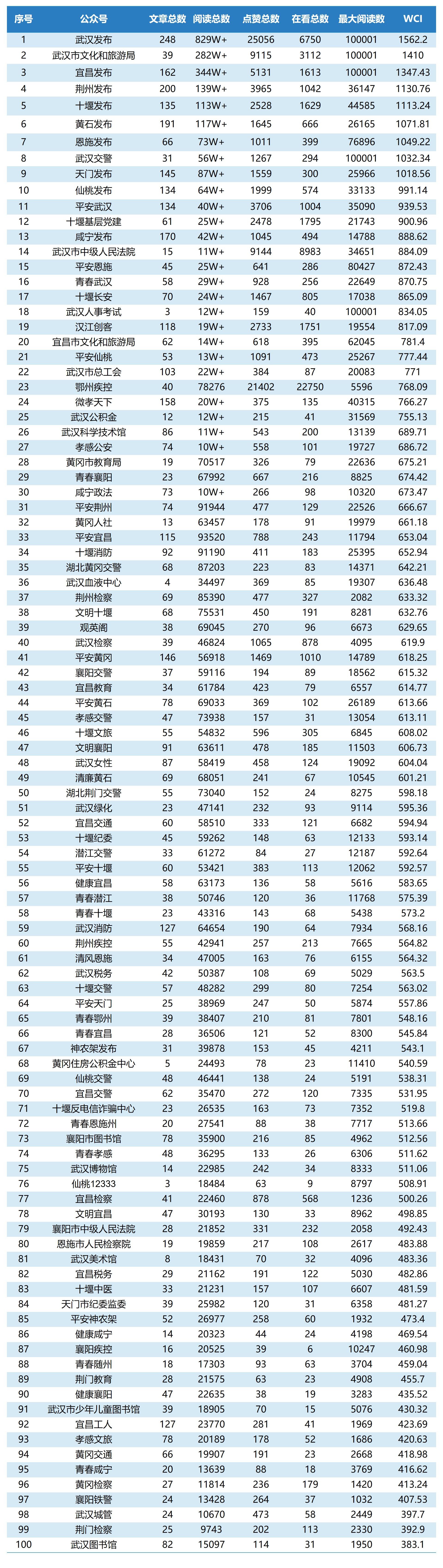圖:湖北市州微信排行榜TOP100