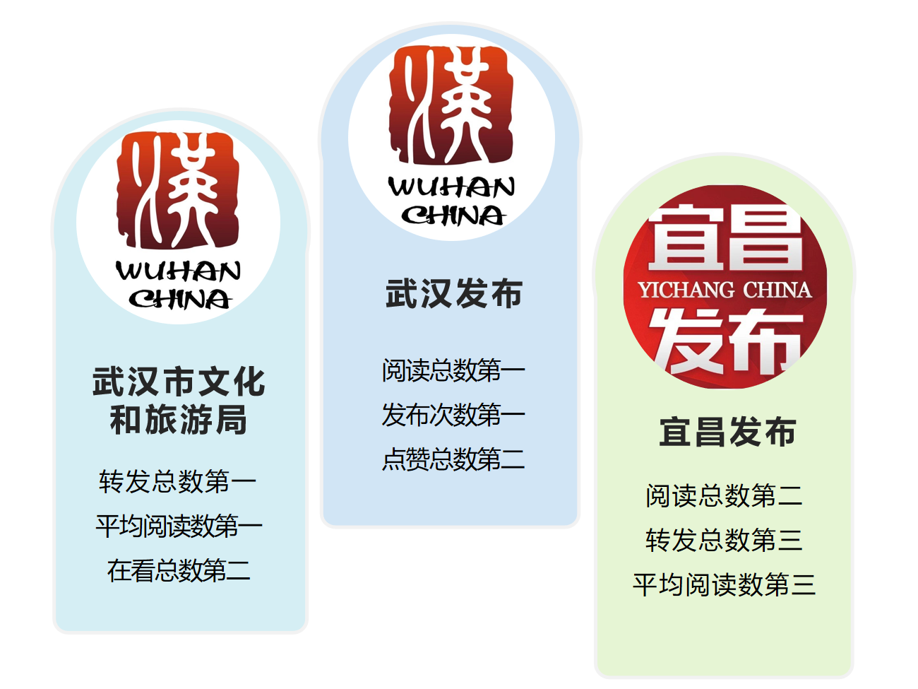 從閱讀總數(shù)來看,仍有六成賬號(hào)閱讀量下滑,僅39個(gè)賬號(hào)閱讀量有所增長(zhǎng),較上期減少6個(gè)。前十名賬號(hào)中,半數(shù)賬號(hào)閱讀總數(shù)下降,其中以閱讀總量601萬+排名第一的“武漢發(fā)布”降幅最大,較上月減少87萬;“宜昌發(fā)布”閱讀總數(shù)313萬+,較上月再增加12萬+,位居單項(xiàng)第二;“武漢市文化和旅游局”閱讀總數(shù)173萬+,位居單項(xiàng)第三但較上期下降39萬+。從閱讀數(shù)增量來看,本期除“宜昌發(fā)布”外,僅“武漢科學(xué)技術(shù)館”閱讀量增長(zhǎng)超10萬。本期,閱讀量10萬+文章也明顯減少,共17篇,較上期減少12篇,其中“武漢市文化和旅游局”10篇,“武漢發(fā)布”6篇,“武漢交警”1篇。