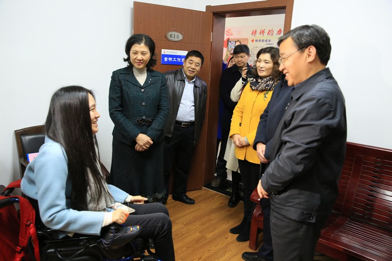 "春節快到了,我們來看望您,您是很多人學習的榜樣,給您拜個早年。"23日上午,在武漢軟件工程職業技術學院董明工作室,慰問組給全國道德模范董明送上了鮮花和慰問金,轉達了中宣部、中央文明辦領導的親切問候,并仔細詢問了董明的身體、工作狀況,勉勵她繼續發揮好示范引領作用。