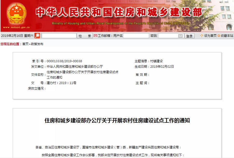 《住房和城鄉建設部辦公廳關于開展農村住房建設試點工作的通知》
