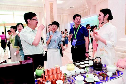 省茶業集團帶來了宜紅和恩施玉露“一紅一綠”兩種茶葉,成為現場的“爆款”。用礦泉水冷泡出來的恩施玉露湯色透明,看上去和白水無異,卻有著濃濃的清新茶味。嘉賓們紛紛稱贊,現場準備的小罐茶葉伴手禮很快就發放一空。來自內蒙古的一位嘉賓說:“一直有喝茶的習慣,對茶葉很挑剔,但這兩款茶葉沒得說。”