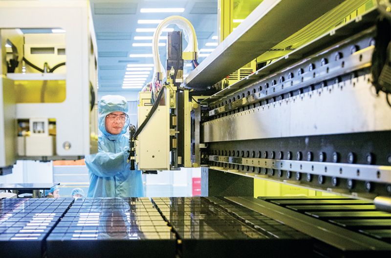 2023年10月18日,G6高分辨率新型顯示噴印裝備在武漢正式完成組裝,裝備采用的是具有完全自主知識產權的高分辨率電流體噴印技術。圖為完成組裝當日,工作人員在調試G6高分辨率新型顯示噴印裝備。 新華社發 杜子璇/攝